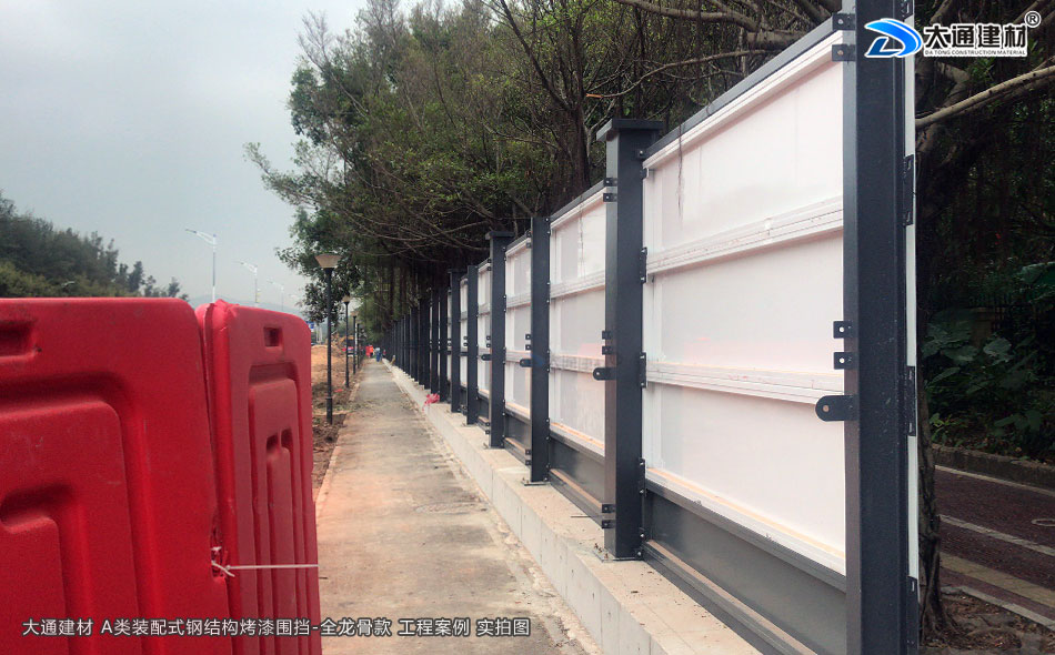 深圳市大通建材圍擋烤漆全龍骨A款是一款施工用防護(hù)隔離圍擋。大通建材圍擋A款采用鋼結(jié)構(gòu)設(shè)計(jì),安裝穩(wěn)固,抗風(fēng)力強(qiáng)力;裝配式,拆裝與運(yùn)輸都很便捷;雙面烤漆鋼板,表面十分光滑,色調(diào)溫和美觀;不易銹蝕,可以很好地抵御強(qiáng)酸強(qiáng)堿的侵蝕,可循環(huán)使用。