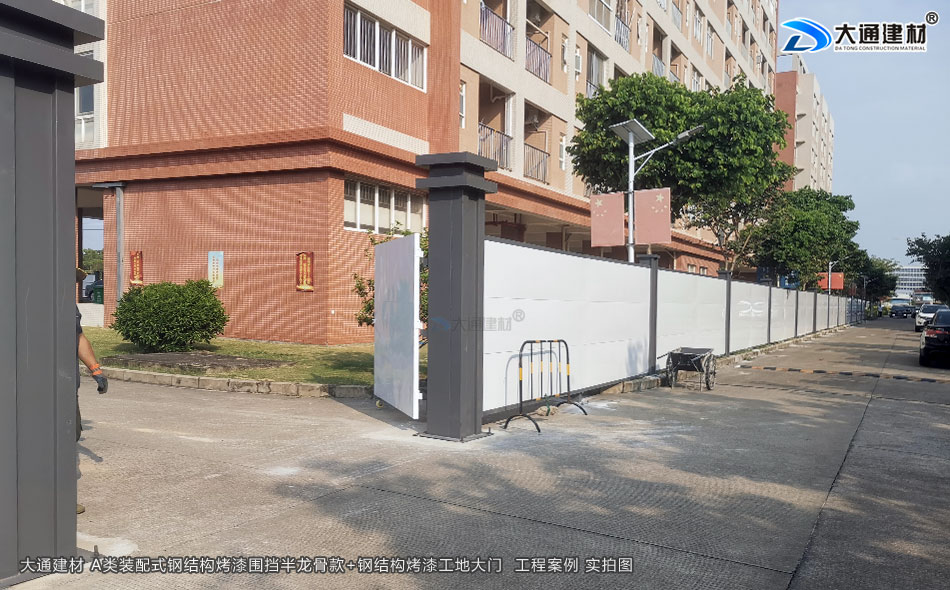 大通建材 A類鋼結構烤漆圍擋-2米高半龍骨款 應用到惠州項目工程圍擋案例實拍圖如下