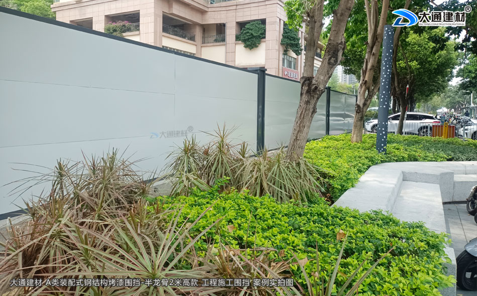 深圳城市建設(shè)城區(qū)改造工程項(xiàng)目選用大通建材2米高裝配式圍擋烤漆A款,具有結(jié)構(gòu)牢固、可抗臺(tái)風(fēng)、可回收循環(huán)利用、美觀、環(huán)保等特點(diǎn),是目前業(yè)內(nèi)倍受喜愛(ài)的圍擋之一。
