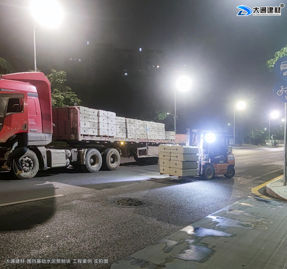 大通建材圍擋基礎(chǔ)塊專業(yè)配送安裝團(tuán)隊(duì)星夜出發(fā)