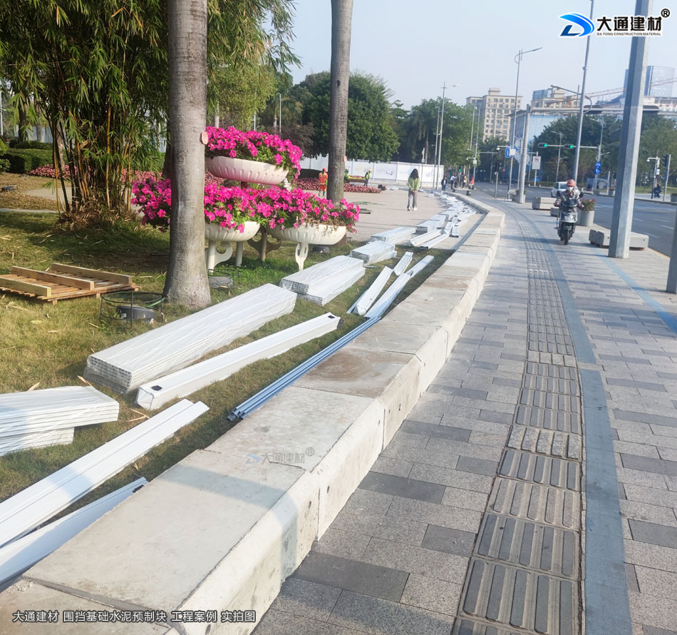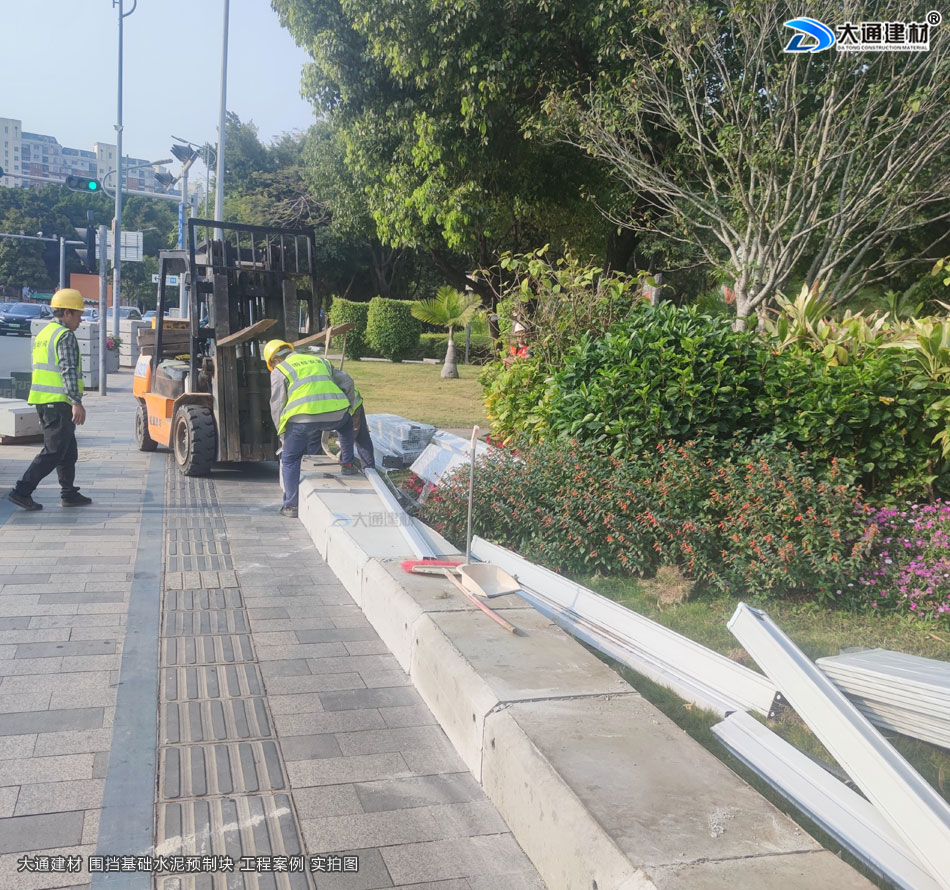 深圳市大通建材生產(chǎn)批發(fā)的塊狀圍擋基礎(chǔ)水泥預(yù)制塊應(yīng)用到深圳市龍華區(qū)觀瀾河景觀提升改造工程中