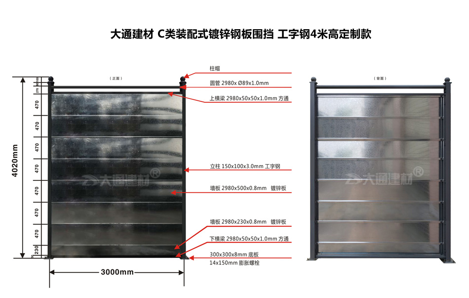 深圳市大通建材 C類鍍鋅鋼板圍擋-裝配式圍擋工字鋼4米高定制款 產(chǎn)品特點(diǎn):