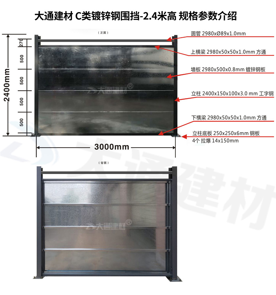 大通建材專業生產批發C類裝配式鋼圍擋-鍍鋅板款 有現貨 由廠家直接銷售 價格便宜 下單即可安裝送貨安裝 也可根據客戶需求進行定制化生產