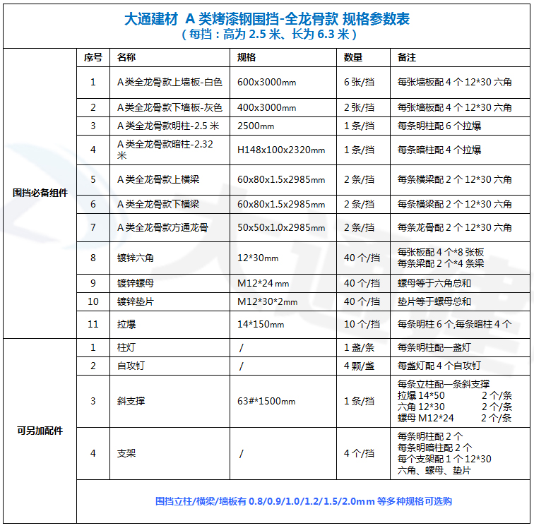 大通建材A類烤漆鋼圍擋全龍骨款適用于市政建設施工、房地產項目施工、地鐵項目施工、學校修建、管網改造、小區改造、城市建設、道路施工等工程使用