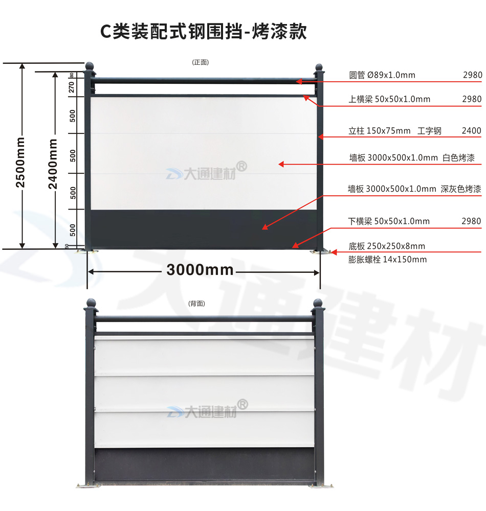 深圳大通建材 裝配式鋼結(jié)構(gòu)烤漆圍擋-惠州C款 生產(chǎn)批發(fā)源頭廠(chǎng)家