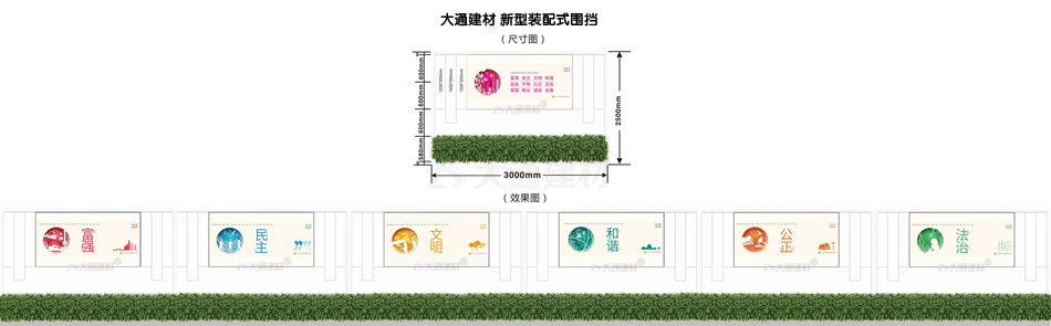 大通新型裝配式圍擋采用全隱藏式立柱、白色烤漆擋板、加上底部配防真綠植,外觀更加美觀、大氣,提高施工現(xiàn)場整體環(huán)境及企業(yè)形象。