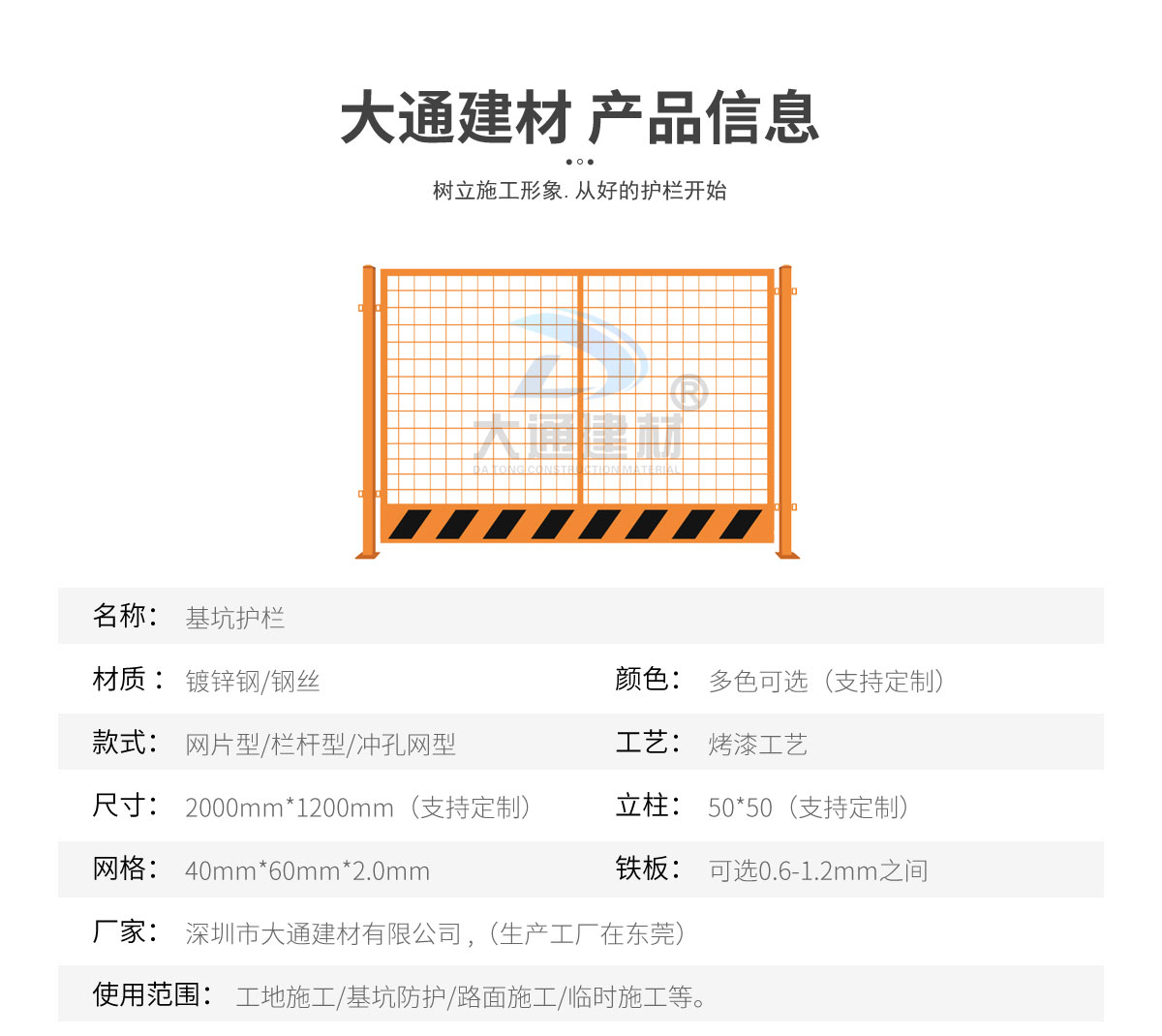 深圳市大通建材有限公司是一家集研發、生產、安裝、服務于一體的綜合性圍擋廠家,公司主營產品鋼圍擋、鋼結構圍擋、PVC圍擋、施工圍擋、市政圍擋、工地圍擋、烤漆鋼圍擋,官網:http://www.dapingmu1.com.cn/ ,銷售熱線:138 2656 2448